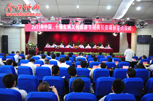 今日竹山网消息 以节为媒,以节会友。今年女娲文化旅游节的重头戏和最重要环节之一的中国十堰2011年女娲文化旅游节招商引资签约仪式5月8日下午如期举行,顺利签约25个项目,总额31.5亿元。