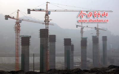 今日竹山网消息 谷竹高速公路竹山段最大的跨河大桥在潘口乡小漩村境内。高架桥设计全长686.25米,为分离式高架桥,共设4个桥台、35个桥墩。该工程自去年10月份开工以来,承建单位中铁四局谷竹经理部克服河水流量变化不规律等不利因素,细化任务指标,对施工的每一个环节、每一道工序进行监控,严把安全质量关,24小时轮班进行桩基施工,顺利完成计划任务。图为高架桥桥墩在晨雾中显得十分壮观。(袁平凡)