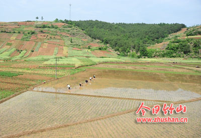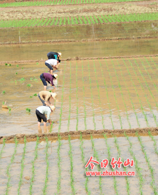 今日竹山网消息 5月15日,溢水镇农民抢抓雨后时机忙插秧。连日来,我县普降小到中雨,干旱多日的农田里有了足够的水,稻苗一片翠绿,适逢中稻插秧季节,田间地头,农民们忙着耕田、施肥、插秧,处处呈现出一片繁忙的中稻春插景象。县农业局抽调技术人员,奔赴在全县各个乡镇,及时进村入田,指导农民插秧,确保今年粮食丰收。截至目前,全县已栽插水稻3万余亩。(全正)