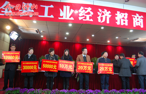 今日竹山网消息 2月22日,在竹山县工业经济招商引资工作会议上,我县拿出150万元现金,重奖2011年度培植规模企业、创精品名牌、亿元工程企业、创建农产品加工园区、外贸出口、利用外资工作的先进企业、先进单位和个人,奖金为历年之最,惠及30家企业,以奖代补为工业“输血”。