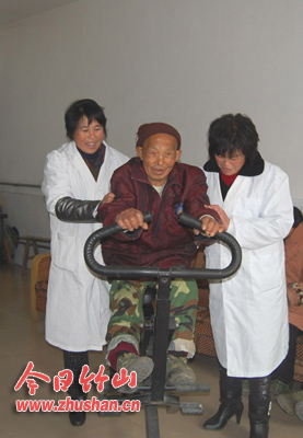 今年6月份,陈世元的甲状腺肿突然恶化,危及生命,院领导立即请来医生对其诊治,前后花去7000余元。期间,服务员王寿云每天为他穿衣、擦身、喂药……还变着花样给老人做饭,亲自喂他吃。如今,病情好了很多的陈世元,一见到王寿云就亲热地叫“姑娘”。为了让陈老汉康复锻炼,工作人员经常手把手教他健身。“来,把腿抬起来,手抓紧。”陈老汉顺从地在“姑娘”们的指导下,活动腿部,脸上露出孩童般的笑容。
