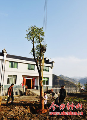 今日竹山网消息 3月26日,上庸镇正在移民门前栽植香樟树。为加强生态文明建设,该镇强化“绿色行动”开始以来,发动千家万户在集镇内外进行植树绿化,政府也购买了垂柳、香樟、女儿红等树木,确保今年植树15000株,进一步提高移民家园的绿化水平。(袁斌 陈涛)