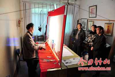 今日竹山网消息 3月26日下午,县文化馆工作室内,皮影戏《露肚脐的新媳妇》正在排练。剧组工作人员和县文体局的同志在现场指导,气氛热烈。