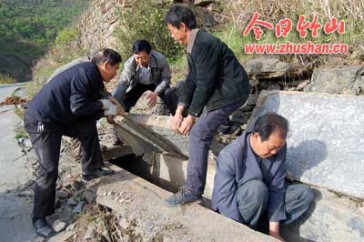 今日竹山网消息 4月10日,秦古镇自来水厂堰道管网铺设施工人员正在施工。秦古自来水厂建于2008年,设计日供水量1000吨。由干旱导致水库水位下降,加之洞沟水库至水厂的供水堰渠多处滑坡导致堰渠破损、漏水。为保证集镇居民用水需求,该镇投资对堰渠、管网进行铺设,新建一座过滤池,确保让集镇居民用水正常、充足、干净、卫生。(党世根 张志强)