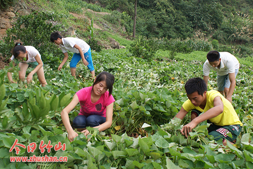 8月4日,家住城关镇窑沟村的武汉理工大学周本文等5名大学生志愿者利用假期帮本村留守妇女周胜香扯红薯草。近日,该村5名大学生志愿者对本村20多户留守妇女和空巢老人家庭分别进行了走访、座谈,并针对困难农户的需求开展义务帮扶活动,受到群众的好评。暑假期间,我县不少大学生志愿者自发组织开展各种社会实践活动,他们利用假期去体验农村的生活和生产方式,体会“锄禾日当午,汗滴禾下土”的艰辛。(陈昌荣)