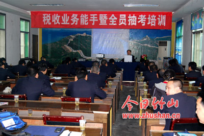 今日竹山网消息 11月10日,县国税局税收业务能手和全员抽考培训班在县长城宾馆开班,来自县局机关和各分局的41名国税干部以学生的身份参加学习培训。