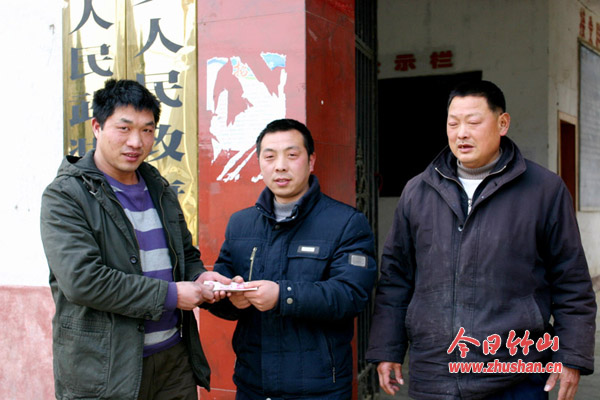 今日竹山网消息 一个在外打拼多年的山里娃,事业有成却始终没有忘记家乡的发展,他把自己辛辛苦苦挣来的3万元钱捐给家乡,用于水毁恢复工程建设,他就是大庙乡四庄坪村三组村民——吴超。