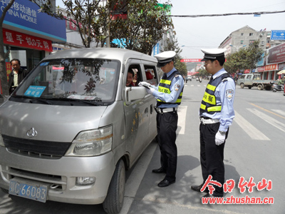 今日竹山网消息 5月4日,县交警二中队民警正在305省道宝丰集镇对来往车辆证件进行检查。为确保女娲节交通秩序,二中队12位民警组成两个专班,出动两台警车,对过往车辆开展24小时巡逻检查,每天查处无证无牌、超员、灯光不全、挪用号牌、洒后驾驶的达100多起。据统计,元月以来共查出违章驾驶的6000多起,有效保证了305省道西区所辖溢水、麻家渡、宝丰等8个乡镇的交通秩序。(王义富 何金刚)