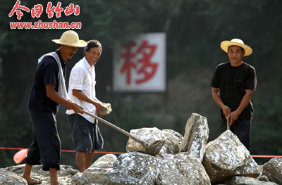 家住洪坪村三组的移民朱德贵,两个大孩子都已外出打工挣钱,只留下他和妻子、小儿子在家建房。“再苦再累,熬过今年就好了。”老朱并没多大怨言。一阵通天的烟花,原来是邻家的孔令华家开工了,乡亲们纷纷赶过去祝贺。越是艰难困苦的时刻,越是需要大家齐心协力,相互帮助……指挥部派来搞服务的干部们,更是与大家同甘共苦,划宅基,调纠纷,确保保水电畅通和建材供应……