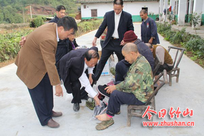 今日竹山网消息 近日,得胜镇分管民政的副书记席大勇组织民政办、合管办、卫生院等单位,为镇中心福利院送去价值3000元的保暖鞋、保暖衣及开展义诊活动,确保五保老人过一个安乐、幸福、温暖的冬天。