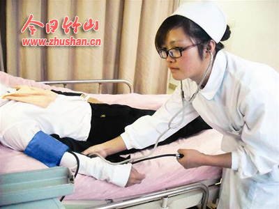 目前,周丽是十堰市太和医院手术室的一名护士。手术室工作紧张繁忙,工作时间长而不规律,对此,周丽说“忙点儿,多学点儿东西,挺好!” (李永芳)