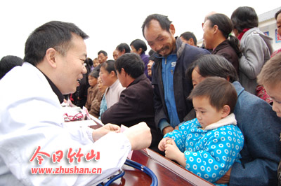 今日竹山网消息 “医生,我家的小孩6岁了,个子比同年龄的小孩矮很多,还容易生病,这是什么问题?”深河乡茅坝村村民向前来送科技下乡的医务人员咨询。“经过初步听诊,小孩的心脏有杂音,不排除先天性心脏病的可能,请尽快到正规医院做进一步检查,早治疗早日恢复健康。”