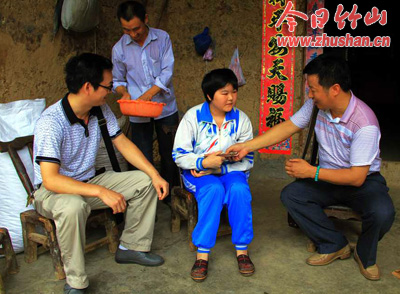 今日竹山网消息 9月2日,竹根联盟十多位盟友来到楼台乡雷峰沟,探望重病的汪艳,并向汪艳捐款6501元。市人民医院了解到汪艳的情况后,决定在治疗上给予优惠,汪艳将于近期到市人民医院进行化疗。