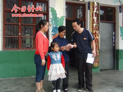 今日竹山网消息 9月21日上午,“竹根联盟”三位盟友来到了溢水镇中心幼儿园,将600元爱心款送到了贫困幼儿陈忆婷奶奶的手中。
