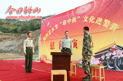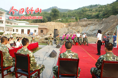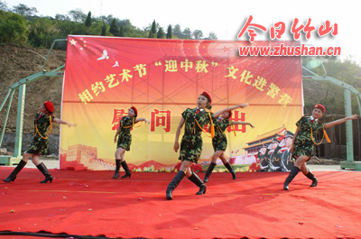 今日竹山网消息 9月27日,正值国庆、中秋两节来临之际,县文体局组织宣传文化中心三十余名演员,带着县委、县政府的温馨问候,来到县武警中队,向县武警中队、消防中队的武警官兵们互动联欢,共庆佳节。