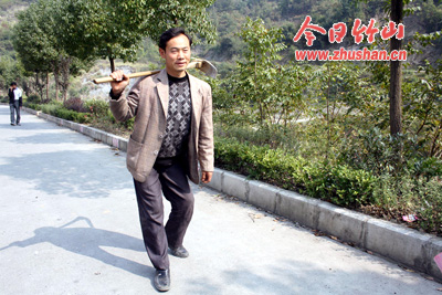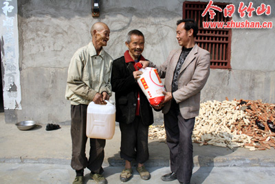 10月24日,记者在该县城关镇二道坊村新农村社区,见到45岁的陆龙武。当时,他刚从二道坊村马家坡上看望两位孤老回来。近一个星期,孤老华福录老毛病复发,他每天都到马家坡上探望照顾这个孤寡多病的老人。