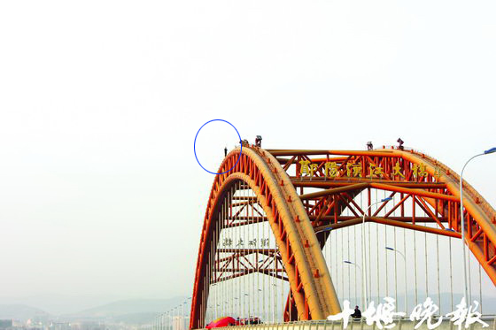 当时,女子坐在大桥桥架顶部,桥架离桥面30多米高,桥面离水面有20米左右,桥下是奔流不息的汉江。女子坐在上面情绪很激动,扬言要从桥上跳下自杀。