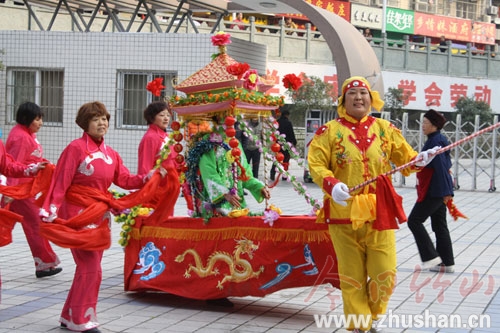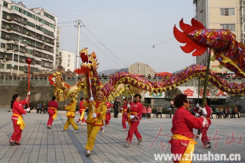 今日竹山网消息 1月25日,由城关镇大街社区“康乐之家”文艺宣传队正在县职业技术集团学校操场排练自发组织、自编自演的迎新春女子龙、船歌舞等群众喜闻乐见的文艺节目。为丰富春节群众文化生活,“康乐之家” 精心组织舞龙、彩船、龙灯等各种传统文化节目表演队,将走街串巷为群众送上“文化大餐”。(刘理文 陈昌荣)