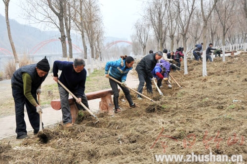 今日竹山网消息 2月23日上午,记者在堵河青年林景观公园采访时看到,投资250多万元进行的堵河青年林园林景观新一轮上档升级改造,已全面拉开施工序幕。在园区里,随着挖掘机一阵忙碌后,园林工人忙着在施工区域内清除杂草。