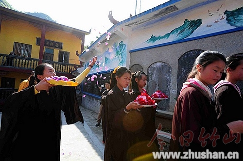 今日竹山网消息 5月6日(阴历4月初8),是大乘佛教纪念和庆祝佛祖释迦牟尼诞生的日子。来自河南省、陕西省和本省周边县市已在石佛寺参加为期半个月的2014年首期2个“佛七”活动的近200余名信奉佛教的僧众,在石佛寺隆重举行盛大浴佛仪式等系列庆祝活动。竹山佛教协会会长、石佛寺管委会主任、住持释本觉主持“佛七”和“浴佛”等庆祝活动。在县民宗局的指导、协调下,各项活动取得圆满成功。(贺茂堂)