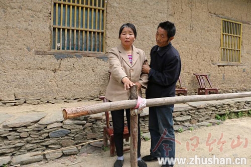 今日竹山网消息 走进竹坪乡安河塘村四组村民宋学忠家,他正在门前搭起的横木旁扶着妻子田芙蓉练习行走。田芙蓉有气无力地站着,看起来随时有可能摔倒,一问才知道刚得了一场大病——脑溢血中风偏瘫,目前正在练习康复。看着他们夫妻二人居住的简陋土墙房屋、寒酸的衣着、虚弱病体,真的很难相信他们有能力抚育两个孤儿长大成人。