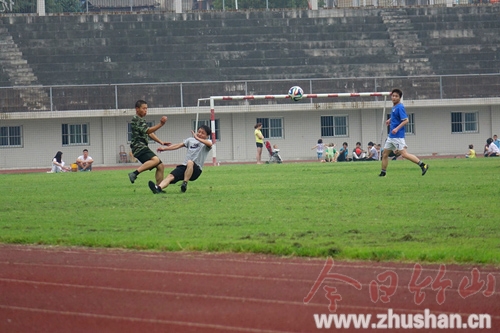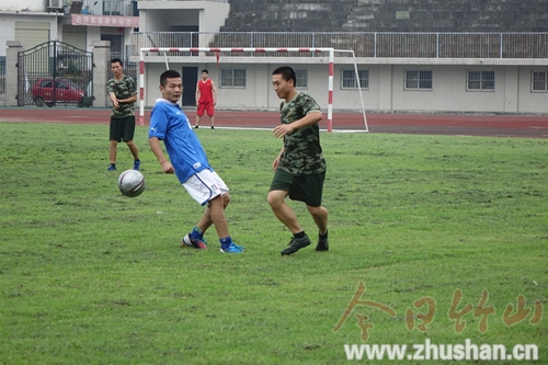今日竹山网消息 6月12日下午16时,县文体中心的草坪上,不时传来阵阵掌声、欢呼声和喝彩声,20余名足球爱好者正驰骋球场,挥汗如雨,激烈搏杀,现场气氛热烈,频掀高潮。