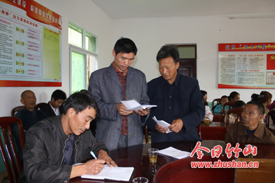 今日竹山网消息 10月17日,城关镇高家庄村扶贫互助社通过民主选举宣告成立。村党支部书记黄治斌,老党员张友华分别以满票当选为村扶贫互助社理事长和监事长,这是我县第一家村扶贫互助社。其宗旨是积极探索和完善财政扶贫资金使用管理的创新机制,增加贫困群众收入,提高贫困农户自我积累、自我管理,互助互济和持续发展的能力。县扶贫办和城关镇领导亲临现场指导和见证。