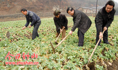 今日竹山网消息 3月5日,大庙乡鲁家坝村组织村民积极搞好油菜田间管理。由于长时间干旱,该乡油菜受损严重,很多高坡地块的油菜干死。一场小雨过后,该乡迅速组织各村搞好油菜松土、施肥、除草,以便把损失降到最低程度。(袁平凡 章海波)