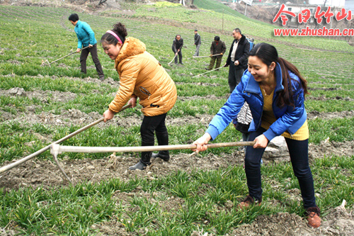 今日竹山网消息 2月19日,城关镇迎丰村4组计划生育示范户、留守妇女梅付莲(右一)带着小女孩回娘家帮助父亲管理6亩责任麦田。立春过后,天气转暖,我县广大农民在县农业技术人员的指导下抓紧晴好天气,对全县10多万亩小麦浇灌、施肥进行田间管理,确保夏粮丰产丰收。(陈昌荣 朱天平)