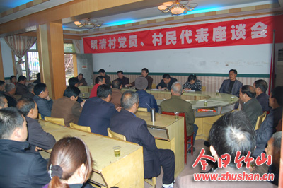 今日竹山网消息 11月11日上午,城关镇明清村会议室里座无虚席。城关镇党委政府“问计于民、问政于民、问需于民”座谈会正在举行。镇党委书记毛昌盛面对面的听取了明清村党员、村民代表的诉求。