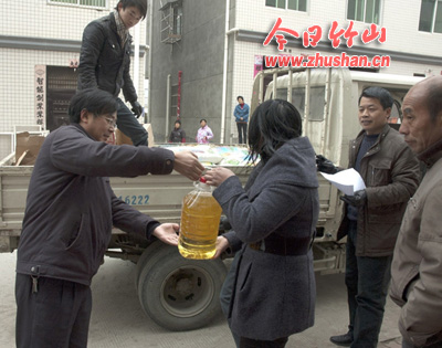 为了确保潘口、小漩、龙背湾三大水电站已搬迁的2万多移民过上一个欢乐祥和的春节,切实解决困难移民的生活问题,县委、县政府筹措价值130多万元的大米、食用油和年画等物资,由90支移民工作队分别送到所包保的移民户家中,让移民真正享受到党和政府的温暖。