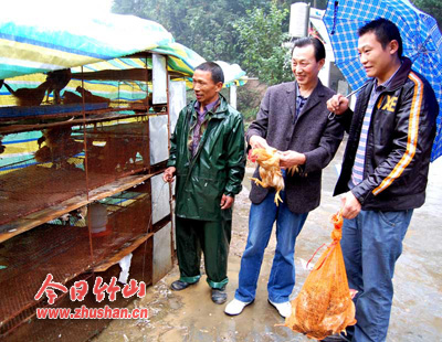 今日竹山网消息 “国庆前内天虽然还下着小雨,但到养殖场购买凤香土鸡人还不少,有城区的,也有乡镇的。”文峰乡凤香土鸡养殖专业合作社经理冯再春介绍说:“一说凤香土鸡上市了,许多人都慕名而来。”一位购买了凤香土鸡的城区黄先生说,这鸡是散养的,又是土鸡,味道好,吃了放心。