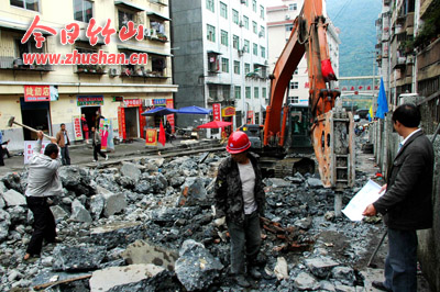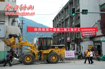 今日竹山网消息 10月12日,十堰路二期工程正紧张施工。项目负责人介绍,十堰路二期工程起点城区人民路庸都宾馆(红绿灯)处,终点与纵横大道(县地税局新办公楼)连接,全长约320米,车行道设计宽7米,人行道宽各1.5米,工程分拆迁征地、路基处理、路面铺设三个阶段,工期150天。它的竣工,十堰路与纵横大道实现互通,给市民群众出行将带来更多方便。(袁平凡 摄)