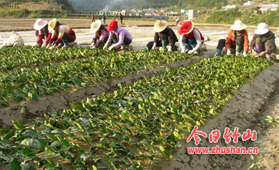 今日竹山网消息 10月18日,笔者在竹坪乡茶叶良种繁育基地看到,在技术人员指导下,几个青壮年劳力正在紧张地整地、起沟、做畦、喷水,随后又拍平、覆盖地膜,十余个妇女正蹲在整好的畦面上,手拿茶穗飞快地扦插茶苗。一畦畦插好的茶苗,像士兵手举旗帜列成的方阵,整齐划一,格外醒目。建设无性系茶园,是提高高效茶园比重,促进茶叶产业提档升级的关键措施。抓好无性系茶苗扦插繁育工作,尽量实现用本地苗建园,又是提高无性系茶苗移栽成活率,建设无性系茶园的基础与关键。近年来,通过不断摸索与改进,我县茶苗扦插繁育技术已逐步成熟,并在竹坪乡建为全省最大的无性系茶苗集中繁育基地,各项配套设施基本完善,年扦插无性系茶苗50亩,出圃茶苗百万余株,有力地支持了我县无性系茶园建设。今年,该基地计划扦插30亩,通过改进技术、强化管理,实现出圃茶苗百万株以上目标。(熊飞)