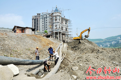 今日竹山网消息 8月27日,记者在堵河景观水系拦河钢坝附属工程建设现场看到,挖掘机轰鸣,十几名工人正在紧张进行钢坝闸门设备电路管道预埋和钢坝边坡治理等附属工程施工,工程建设热火朝天。