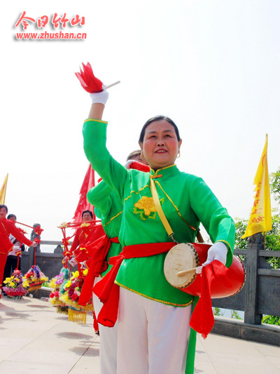 欢快的腰鼓声中,一支淡妆彩服、精神抖擞的女子腰鼓队,边走边舞地出现在竹山县宝丰镇集镇街头。那就是闻名全镇的宝丰镇居委会老年腰鼓队的“娘子军”。今年62岁的叶秋华队长,身材匀称,神情愉悦。她风趣地告诉记者:“我们练腰鼓,原本一是为健身,二是为娱乐,没想到名气越来越大,竟闹得‘满城风雨’。”
