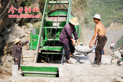 今日竹山网消息 8月11日,记者在305省道城关至潘口河口一级公路建设现场看到繁忙而有序的建设场面:挖掘机伸长手臂把石块、泥土装入运输车辆,运石料、砂石、水泥的车辆来来往往,工程技术人员和施工人员头顶烈日,在清基、浆砌石岸,搅拌混凝土。“城关至潘口河一级公路开工以来,从局领导、工程技术员到施工人员,没有节假日和双休日,抢睛天战雨天,确保了工程建设快速推进。”负责该项工程建设的县公路局副局长朱红斌如是说。