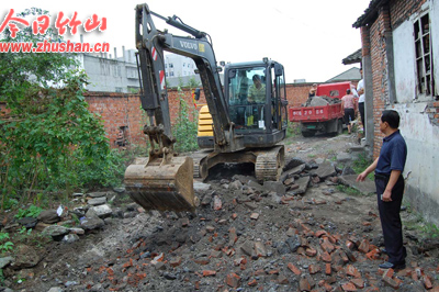 今日竹山网消息 8月22日,记者在北大街社区气象局至轻工协会出口砂石路上看到,挖掘机正在铲除路旁杂草和破损的路面。据北大街社区总支书记赵昌银介绍,这段长150多米的砂石路是北大街近200户居民到城区办事的便捷通道。长期以来,这条通道由于无人管理,加上部分居民在通道边开垦种菜,道路已经变得坑凹不平,造成居民通行不便。为解决居民出行难,镇政府投资7万余元,将这段砂石路铺筑成水泥路。(党世根 冯家斌摄)