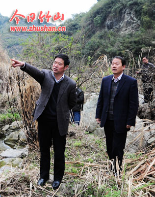县水务局局长朱波亲自带队,身后深入楼台乡官坪村、西坡村和兴旺村实地调研