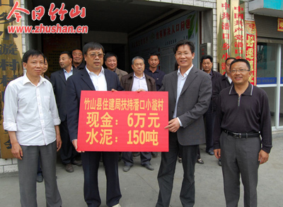 今日竹山网消息 4月20日,县住建局局长胡传朝带着局属二级单位负责人和部分企业法人来到潘口乡小漩村,送来扶持该村发展花生产业、修路、架桥等基础设施建设资金6万元,水泥150吨。村民曹芳礼感概地说:“县住建局‘三万’工作队帮扶我们发展花生产业、修路、架桥,我们真是感激不尽!”