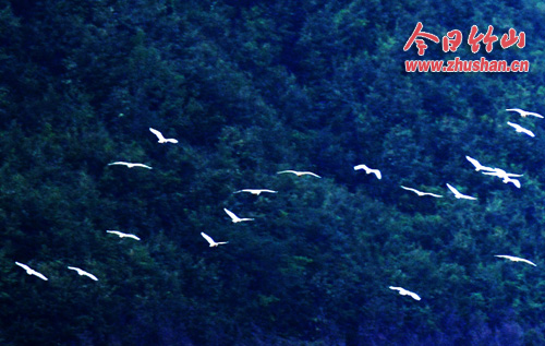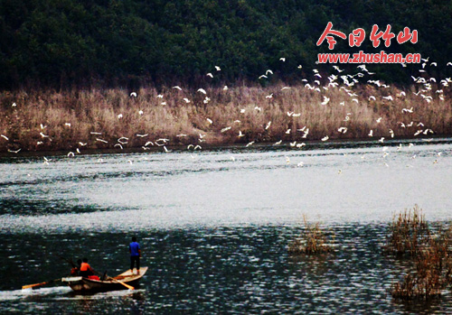 潘口水库控制流域面积近万平方公里,库面可达61平方公里,是南水北调水源区涵养地。为确保南水北调中线工程的水质安全,实现一江清水送北京的目标,我县从水土保持、生态林建设、动物保护、生态养殖、流域治理等多方面入手,全力维护和提升潘口水库的生态景观。白鹭被称为“大气和水质状况的监测鸟”,享有“环保鸟”的美誉,是国家二级保护动物。今年7月起,大量白鹭落户潘口水库内,形成大大小小的白鹭群,总数量超过5000只。(袁斌 袁平凡 邵久红)