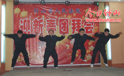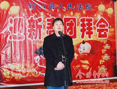 今日竹山网消息 1月22日19时30分,随着欢乐的掌声响起,县法院党组书记、院长吴英忠走上舞台,即兴发表了热情洋溢的致辞,拉开县法院2011年新春团拜会的帷幕。
