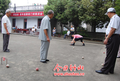 今日竹山网消息 8月29日,在车站门球场上,老年门球队集中学习门球比赛新规则,并按新规则开展训练。近百名门球爱好者或挥棒打球,或围观助阵,个个精神饱满,劲头十足。