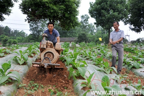 今日竹山网消息 6月5日,擂鼓镇金岭村异常热闹,铁牛下田,忙着深翻土地,烟农们忙着除草起垄,山村里呈现出一派忙中耕保增收的喜人场面。