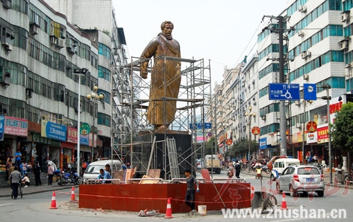 竹山“城标”施洋铜像被亮化处理