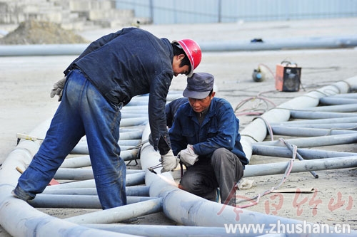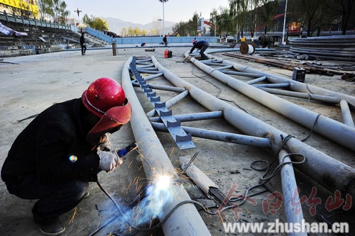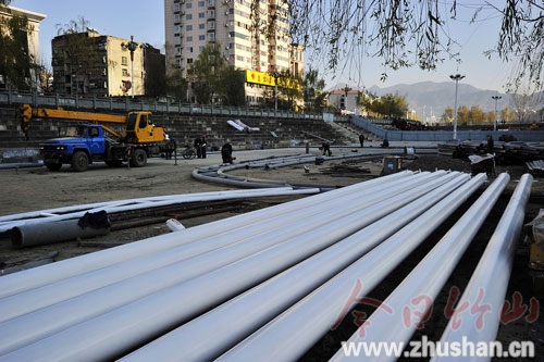 今日竹山网消息 12月21日,竹山堵河广场篮球场加盖膜结构工程紧张建设,施工单位负责人介绍,20天后建设完工。