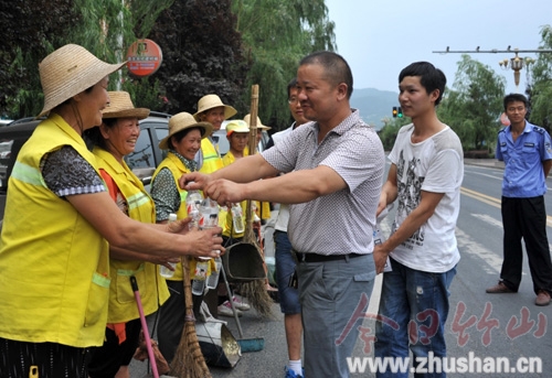 今日竹山网消息 炎炎夏日,骄阳似火。连日来我县最高气温已达38℃,但一部分特殊群体仍然在酷暑下坚守岗位,一些爱心企业为这些特殊群体送去了清凉。