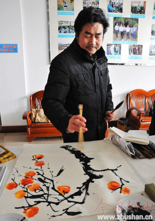 艺术家认真创作《万“柿”如意》。