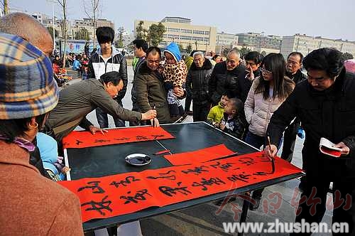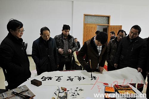 今日竹山网消息 2月1日,十堰市文艺家们为宝丰镇群众送戏、送字画、写春联,县委常委、宣传部长毛昌盛出席此次活动。当天,由市委宣传部、市文学艺术界联合会和市文体局主办,市群艺馆承办的市文艺界“深入生活、扎根人民”主题系列活动在宝丰镇举行。十堰市部分知名艺术家不仅为宝丰镇的父老乡亲送去精彩的文艺节目,还现场为村民写春联、送字画、举办摄影展,为群众送上新春祝福。(袁平凡)
