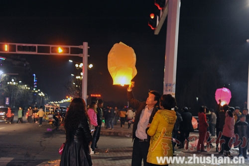而燃放孔明灯,寄托祝福更是这天晚上不可缺少的活动。记者在堵河三桥上看到,几乎每个人的手里都拿着一只孔明灯,有刚开始点的,也有点燃正待升空的,还有一直注视着升空远去的,每一次升空就多了一个愿望,多了一份祝福。随着燃放数量的增加,夜空中的孔明灯也越来越多,放眼望去,满天都是飘飞的“愿望”。(向继华)